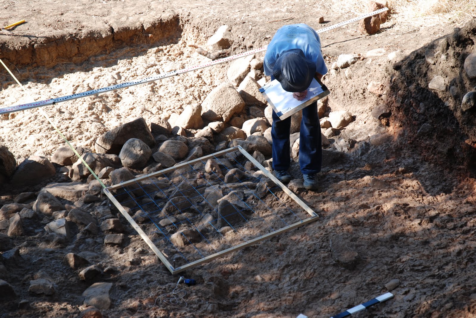 Ao longo do dia prosseguiram os trabalhos de registo na sondagem 1, aproveitando-se a oportunidade para que os voluntários menos experientes aprendam a dominar os vários aspectos da escavação arqueológica, sendo-lhes ministrada formação em desenho e topografia e também em diversos aspectos científicos relacionados com os trabalhos posteriores a realizar em gabinete, como o tratamento e estudo de materiais, para os quais têm mostrado interesse em participar após o fim da campanha de escavação.
