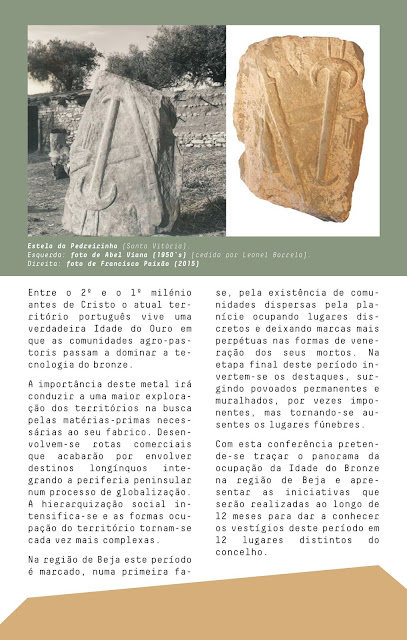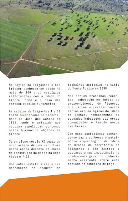 No passado dia 15 de Janeiro realizou-se a conferência "Estelas, cemitérios e pessoas: a Idade do Bronze em Trigaches e São Brissos" que marcou o início das actividades de divulgação do projecto "12 Lugares, 12 Meses, 12 Histórias", nas freguesias do concelho de Beja.
