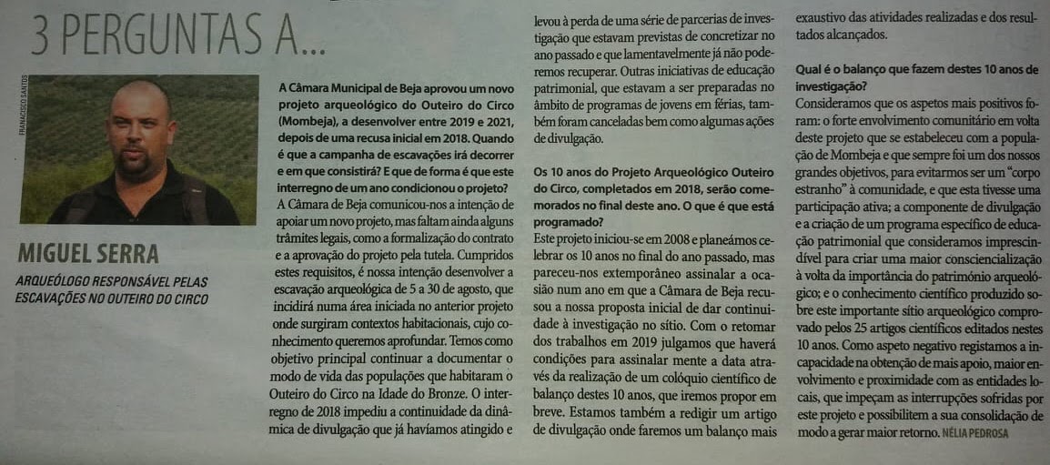 Entrevista do Diário do Alentejo a Miguel Serra, arqueólogo responsável pelo Projecto Outeiro do Circo.