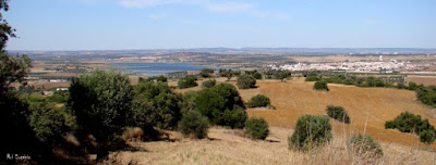 Do sítio arqueológico do Outeiro do Circo com vista para Beringel, Trigaches e barragem do Pisão.